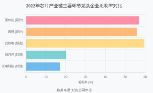 2022年芯⽚产业链主要环节龙头企业⽑利率对⽐