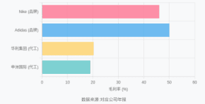 品牌环节的强势直接反映在企业的盈利能⼒上。我们对⽐⼀下运动鞋产业链中品牌商和代⼯⼚的⽑利 率 ,可以发现下游品牌环节的公司⽑利率显著更⾼ 。例如 ,Nike和Adidas作为品牌商 ,2022年⽑利率 分别在46%和50%左右;⽽主要代⼯⼚如华利集团、 申洲国际的⽑利率只有约20%上下。这说明品牌环 节凭借品牌溢价获取了更⾼的利润 ,⽽制造环节由于竞争激烈、议价能⼒弱 ,只能赚取相对微薄的加 ⼯费。 由此可见 ,拥有品牌影响⼒的环节更容易在产业链博弈中取得优势地位。