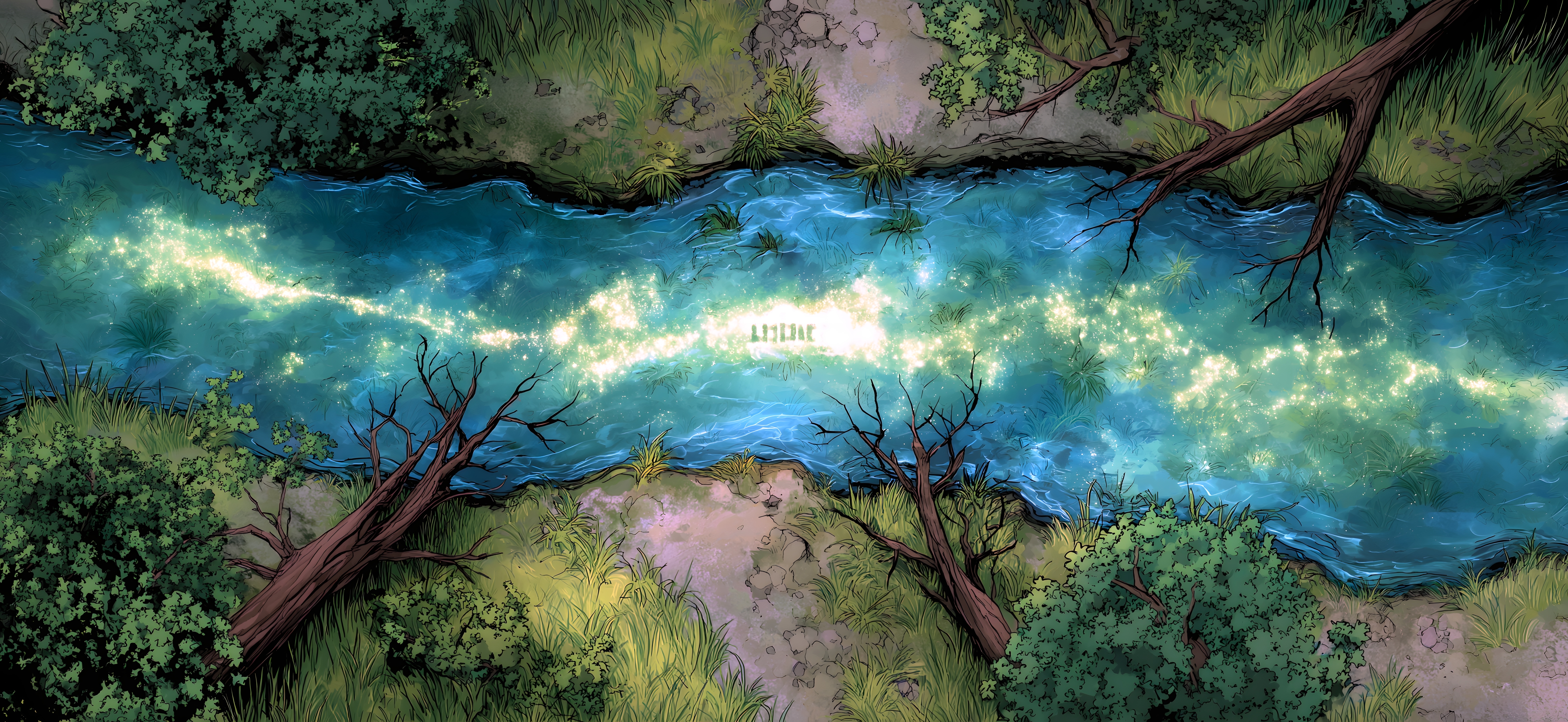 画面描述:洪水与陆地交界,浑浊水与湿润泥土对比鲜明,能量带嵌“界限”楔形文字。水侧浮枝、陆侧草芽,象征灾难与新生分界,贴合两河流域洪水神话,诠释自然力量与生命韧性的文化内核。