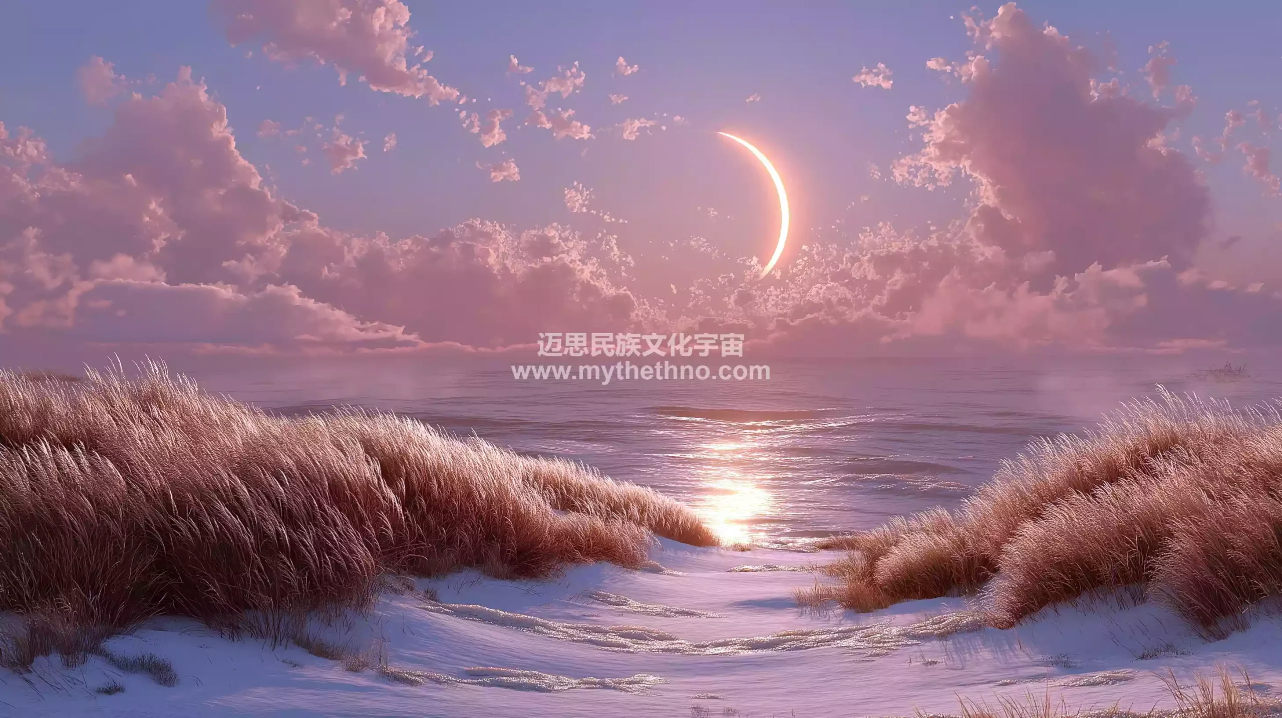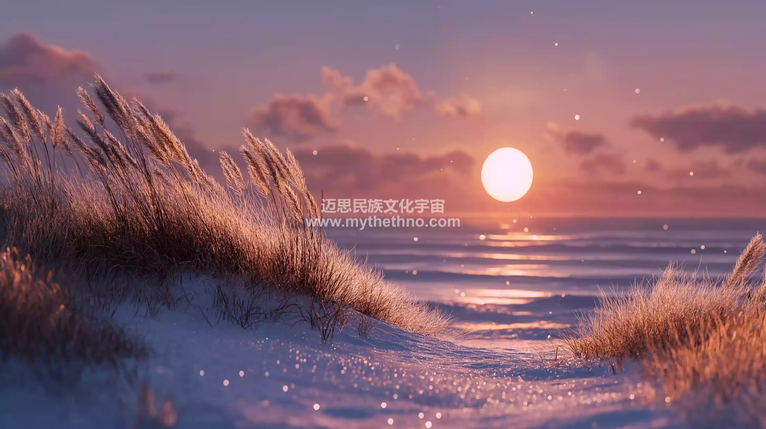 描述:古罗马 “冬至太阳重生” 的信仰具象,低悬金色太阳虚影环绕常青枝与麦穗光环。淡橙天空下,地面覆薄雪,阳光照雪泛金辉,太阳光芒柔和温暖,诠释 “光明回归、严寒消退”,是圣诞 “重生与希望” 寓意的核心文化源头。