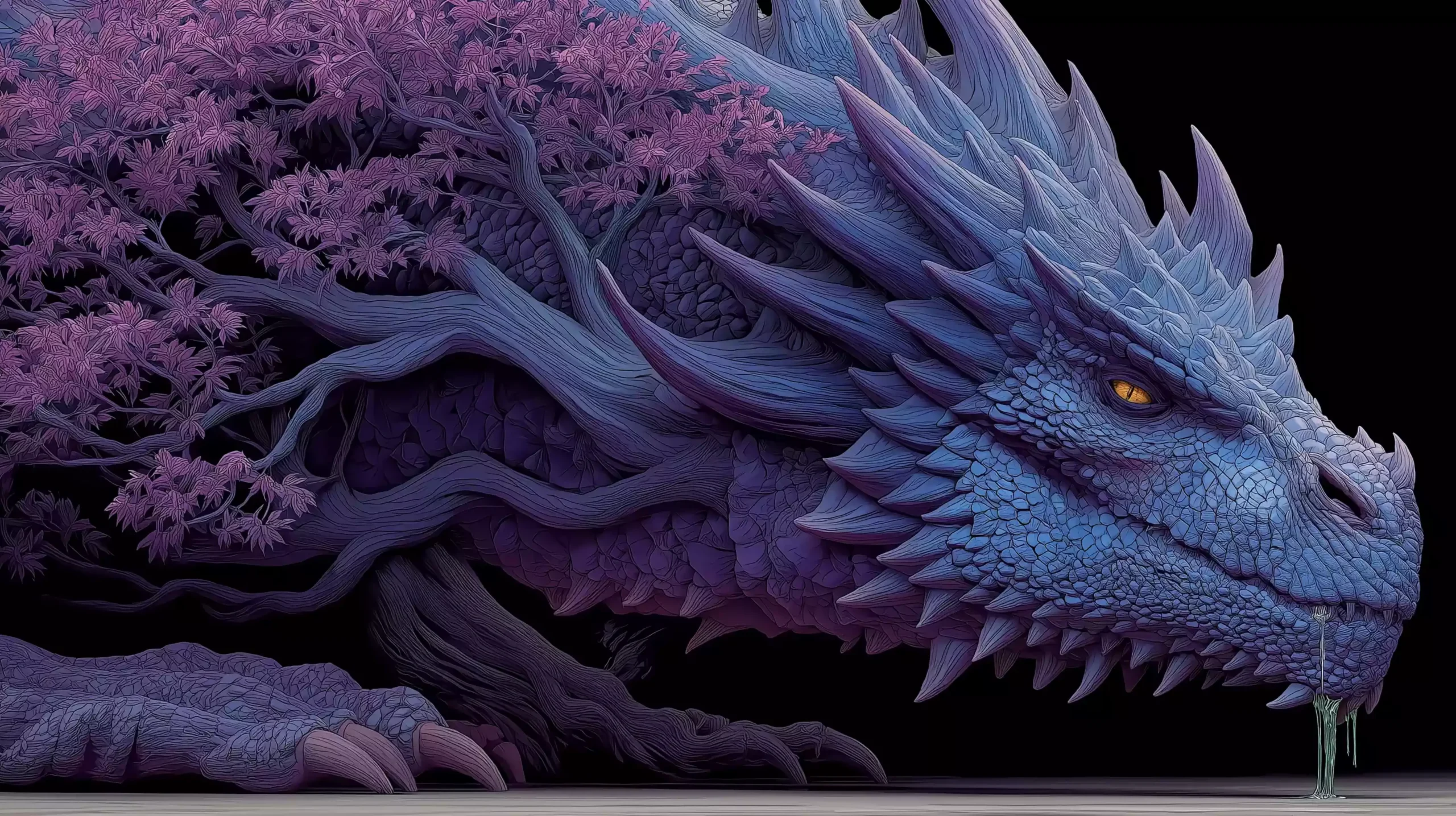 描述:《尼德霍格》,维京时代啃食世界树的毒龙化为暗紫色龙形光影潜伏于黑树根中,蝙蝠状翼展开,口中滴落绿毒液,冥界尼福尔海姆冰蓝雾气环绕,以暗沉光影传递 “腐蚀与毁灭” 的恐怖特质。