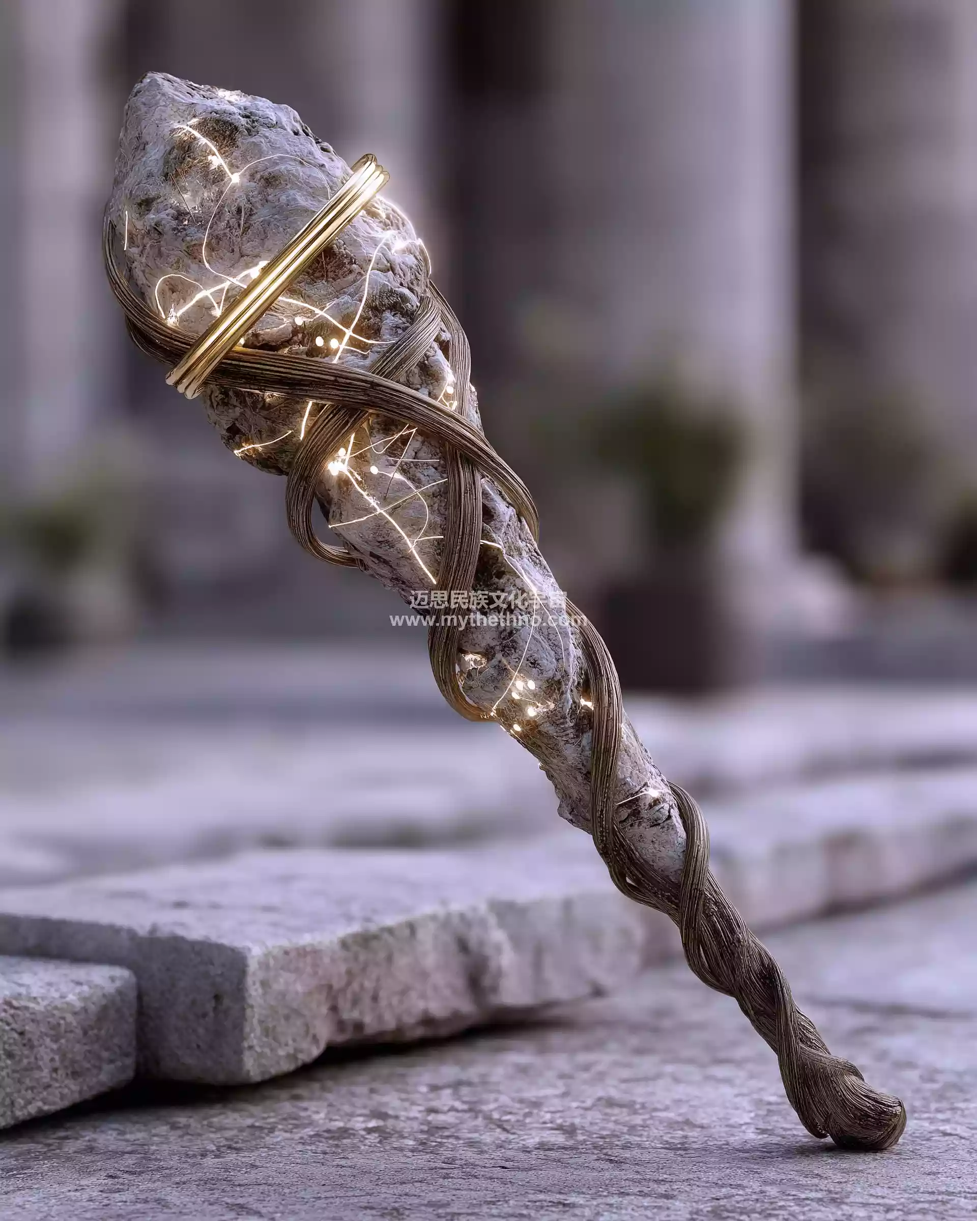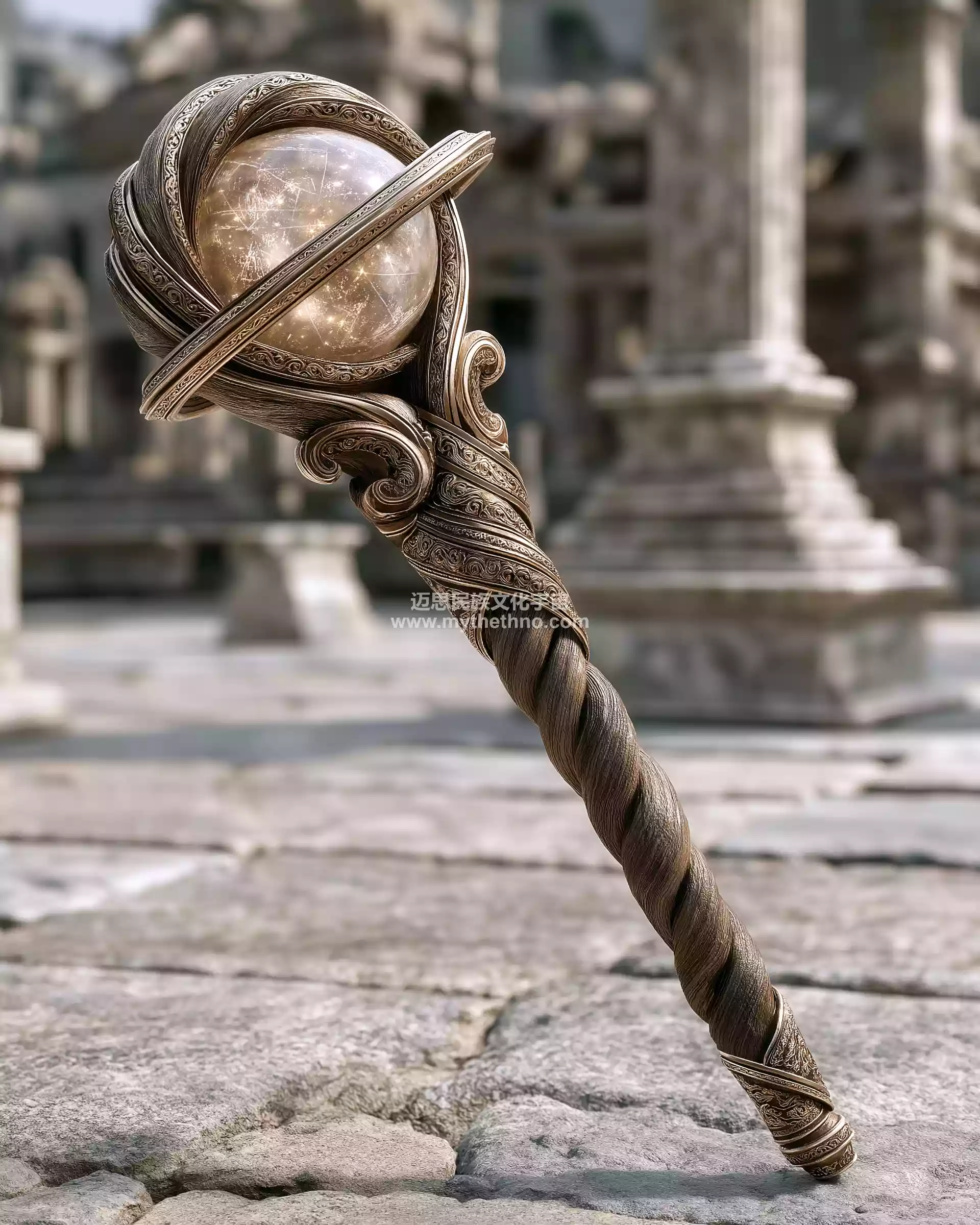 描述:农神萨图恩的木质权杖虚影,杖身缠麦穗与葡萄藤光纹,杖顶旋金色圆环(象征宇宙秩序)。淡棕古罗马广场虚影为底,石板纹理清晰,阳光投光斑,权杖粗糙质感与柔和光纹交融,诠释 “秩序育丰收” 的异教信仰,影响圣诞秩序感内核。