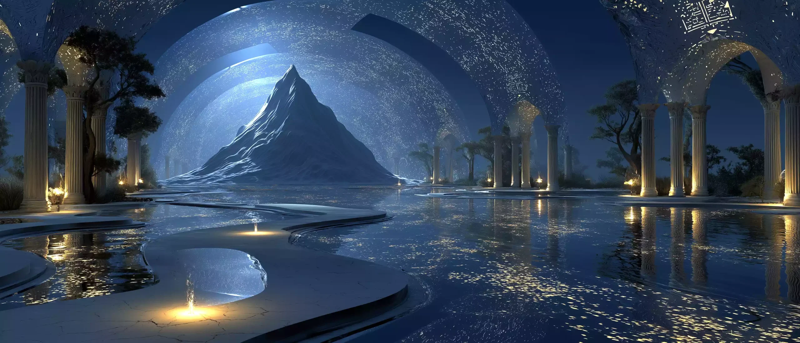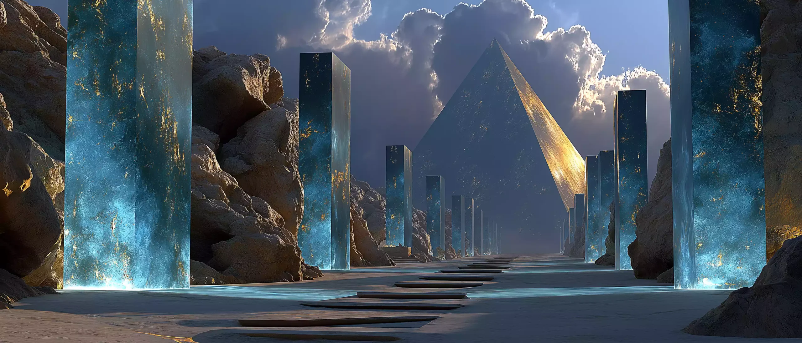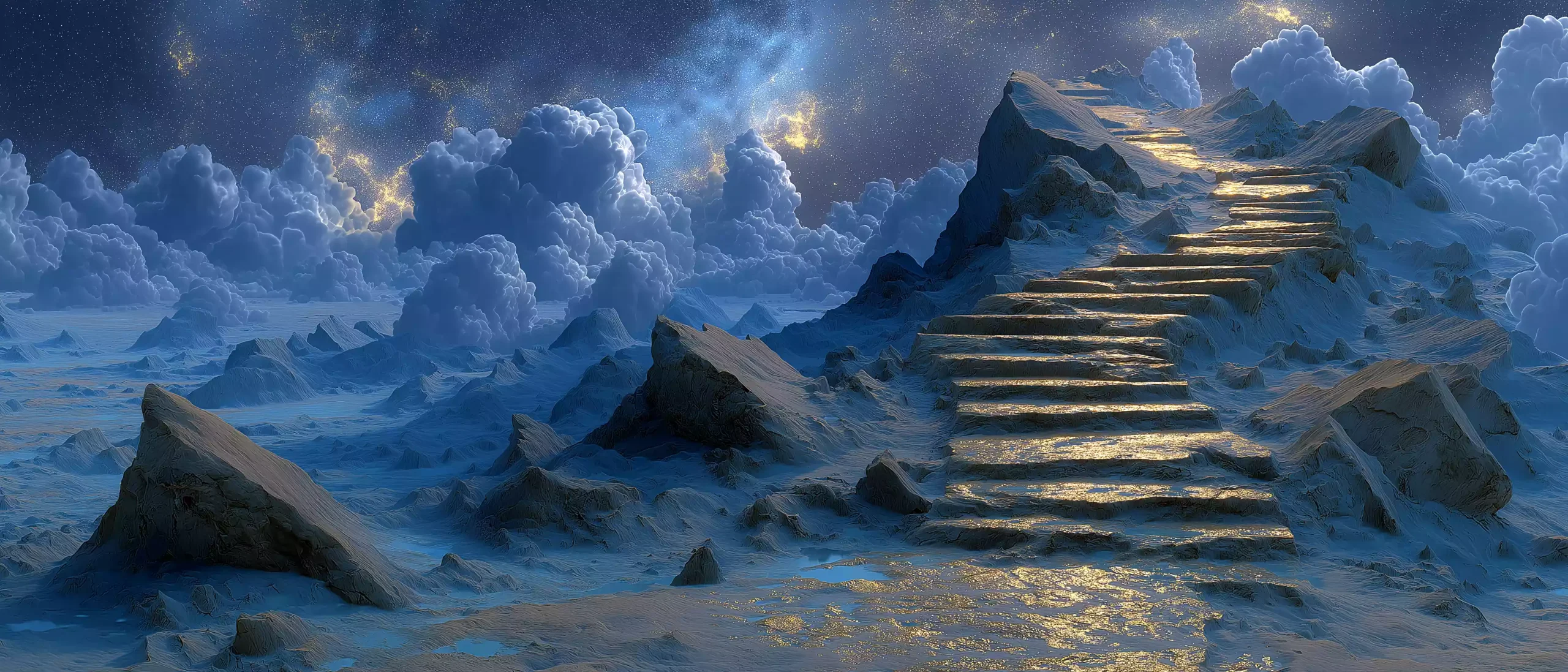 描述:《吉尔伽美什的梦》,公元前 3000 年 – 公元前 8 世纪两河流域苏美尔《吉尔伽美什史诗》背景下,深蓝色梦境空间漂浮破碎石碑,碑上楔形文字如梦中呓语般流动。空间里巨大脚印从左延伸至右,脚印盛满发光液体,倒映扭曲星空。背景有半透明胡尔萨格山影,山巅金色裂缝象征梦境启示,再现英雄梦境的预言感。
