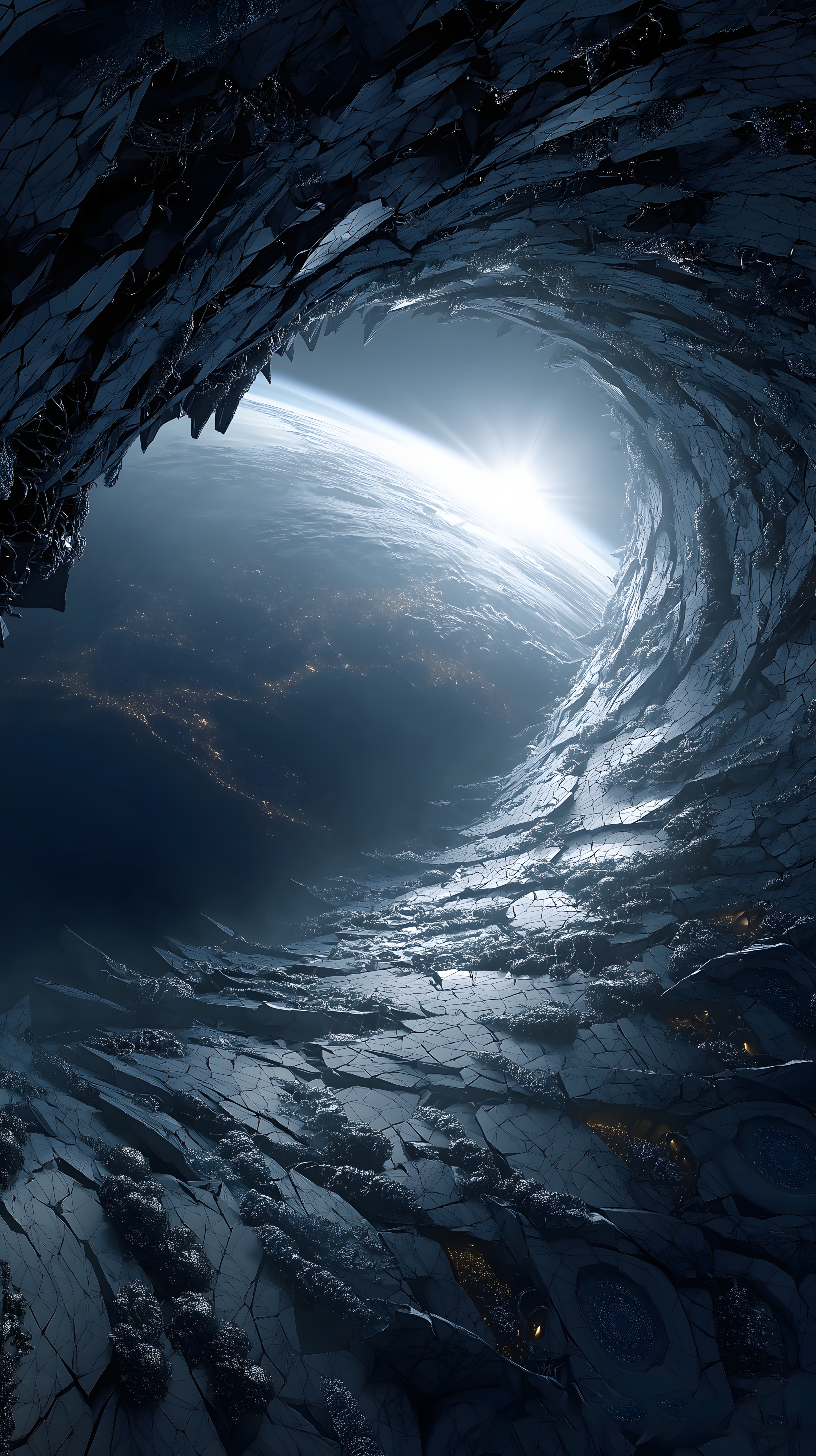 画面描述:融合板块构造科学与阿兹特克地母神话,板块碰撞形成深渊 “巨口”,吞噬月全食血月(贝里珠闪耀),齿缝卡着破碎金字塔基座,岩浆房映照着翡翠 “人脸” 祭品,展现天地终极较量的震撼场景。