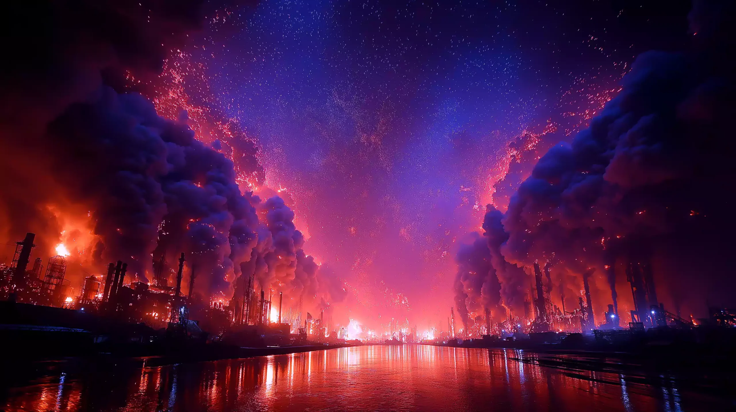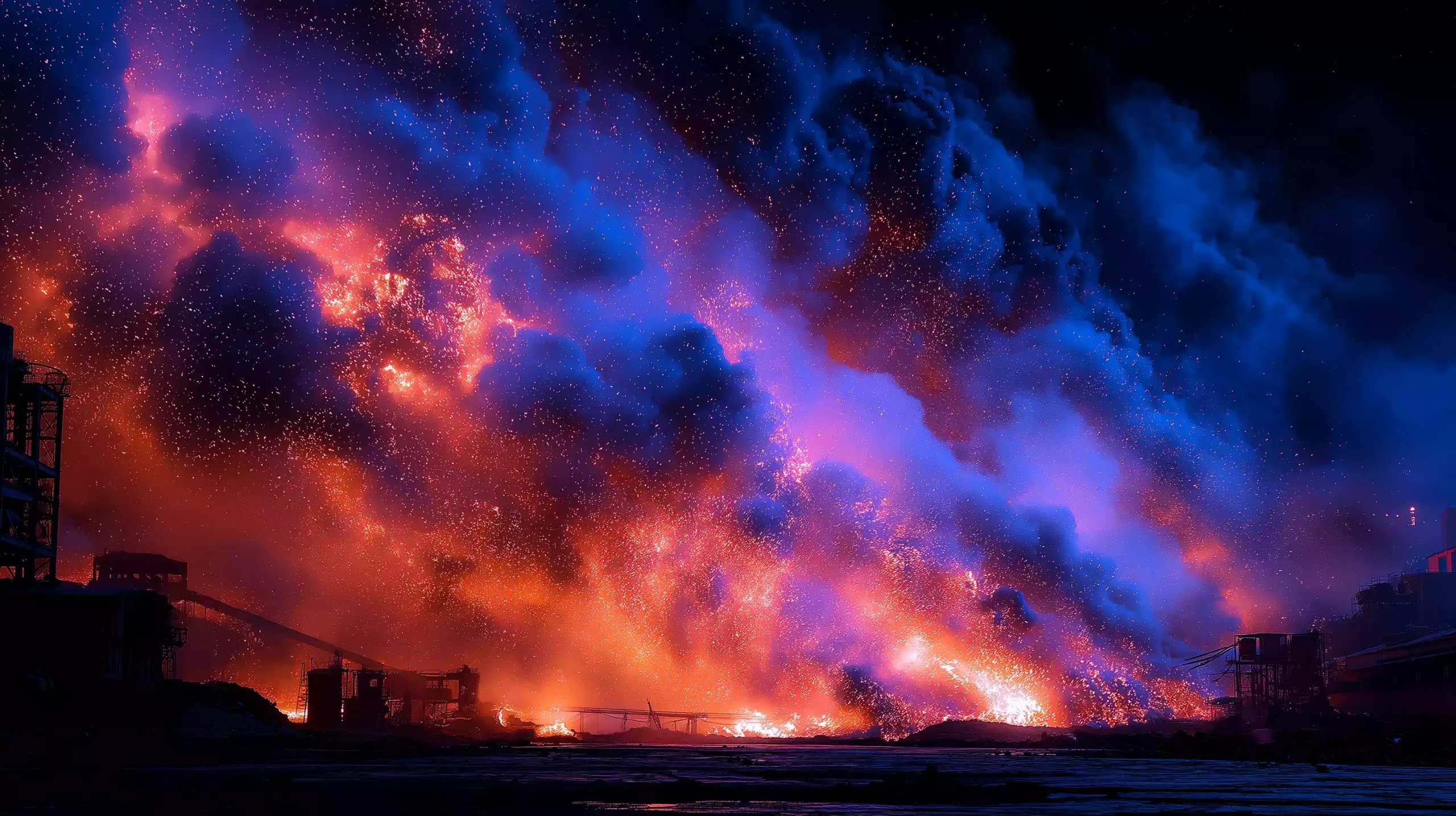 描述:以约鲁巴神话 “战神与铁匠神奥贡” 为核心 —— 奥贡是金属、锻造与力量的象征。画面中,燃烧的金属陨石群穿透云层(陨石象征奥贡从天空带来的金属本源,呼应 “神赐锻造之力” 的神话),落地化为炽热锻造熔炉(奥贡的核心神域,是其打造武器、赋予力量的场所);铁水冷却凝结成 “武器森林”(具象化奥贡 “战神” 属性,武器是其守护与战斗的象征);熔炉烟雾中凝结出战神獠牙面具(獠牙代表勇猛与威慑,是奥贡神性的视觉符号)。整体诠释奥贡 “掌控金属与力量,以锻造守护文明” 的内涵,充满原始与神圣的力量感。