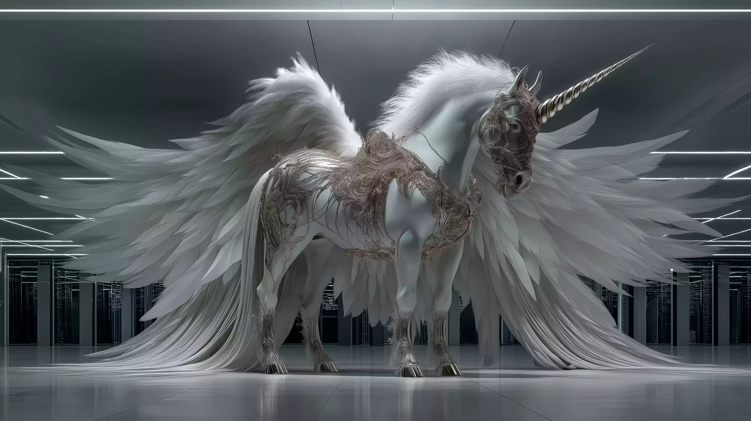 描述:《柏勒洛丰云端征途》,以文艺复兴复兴古典英雄叙事为背景,融合希腊神话柏勒洛丰传说。飞马珀伽索斯翼展重组为服务器集群(翼展象征征途,服务器呼应 “云端”),骑矛刺穿喀迈拉数据病毒(喀迈拉对应神话怪兽,病毒象征现代挑战),缰绳化作光纤流,马蹄烙印云计算商标。画面将英雄征服与现代科技结合,诠释 “英雄精神的科技化演绎”。