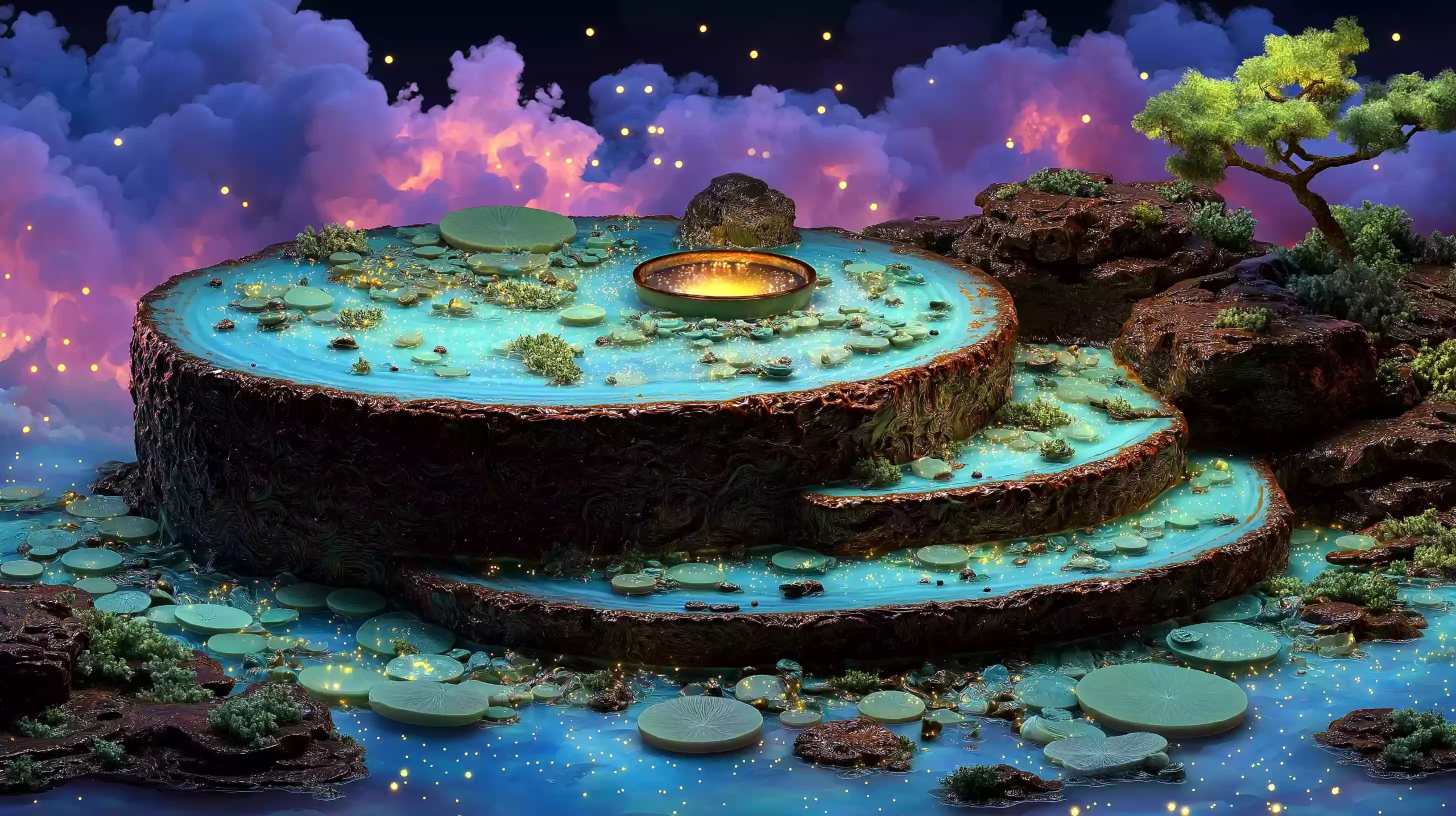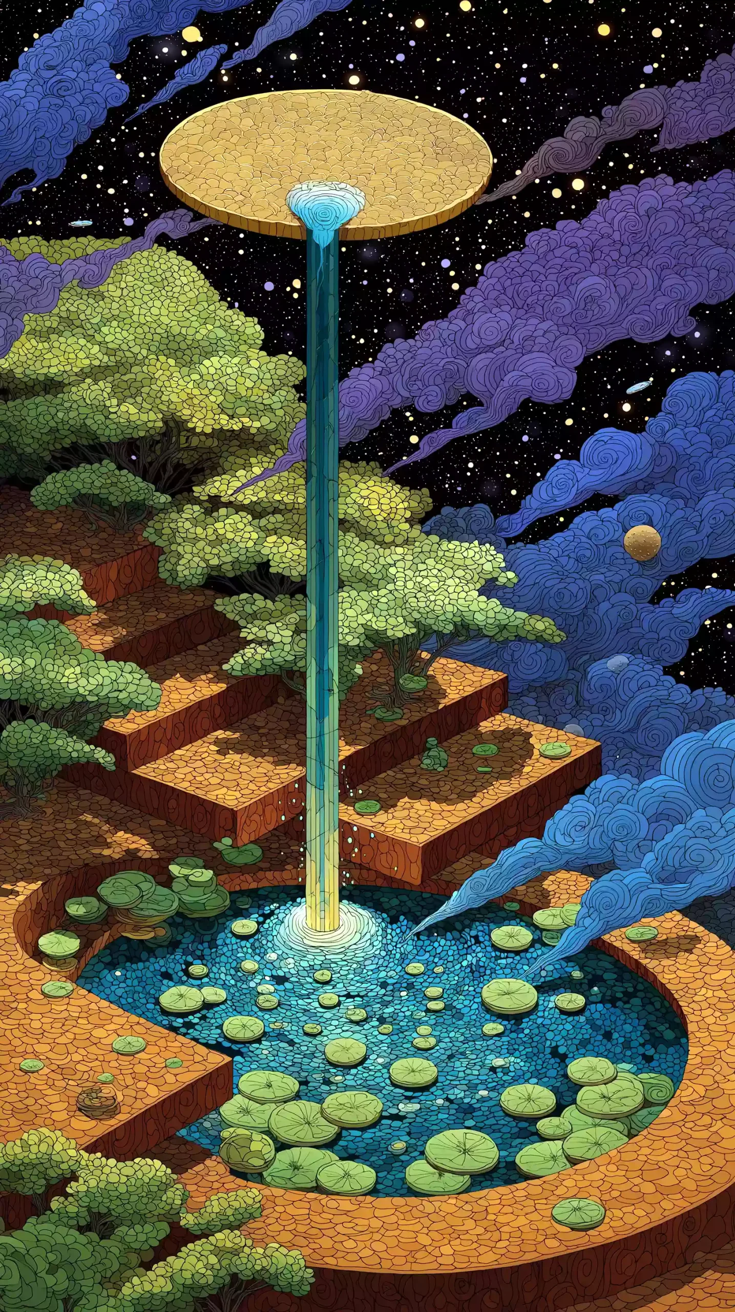 描述:《《汉武帝・李少君炼丹》,聚焦汉代武帝渴求长生、李少君为其炼丹的历史背景。画面融写实与超现实感:中心是带绿锈的青铜丹炉,炉口喷紫色火焰,裹挟金色丹药粒子。周围散落灵芝、仙草等药材,间有白色仙气漩涡。上方悬红色星尘符文,背景是深紫星空,侧逆光衬出器物质感与奇幻氛围,彰显汉代求仙文化。