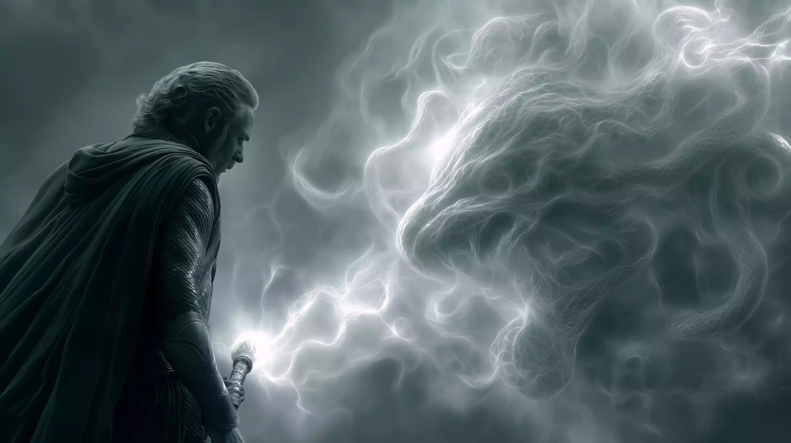 描述:《洛基契约陷阱》,以北欧神话中洛基的背叛特质为核心,发光羊皮契约悬浮虚空 —— 契约是洛基设局的载体。条款文字变形为毒蛇,缠住托尔之锤(雷神锤是北欧神权的象征,寓意陷阱针对神系核心),签名处喷发混沌代码,背景中阿斯加德防御系统过载爆炸。画面将神话诡计与现代 “代码陷阱” 结合,诠释洛基 “混沌制造者” 的本质。