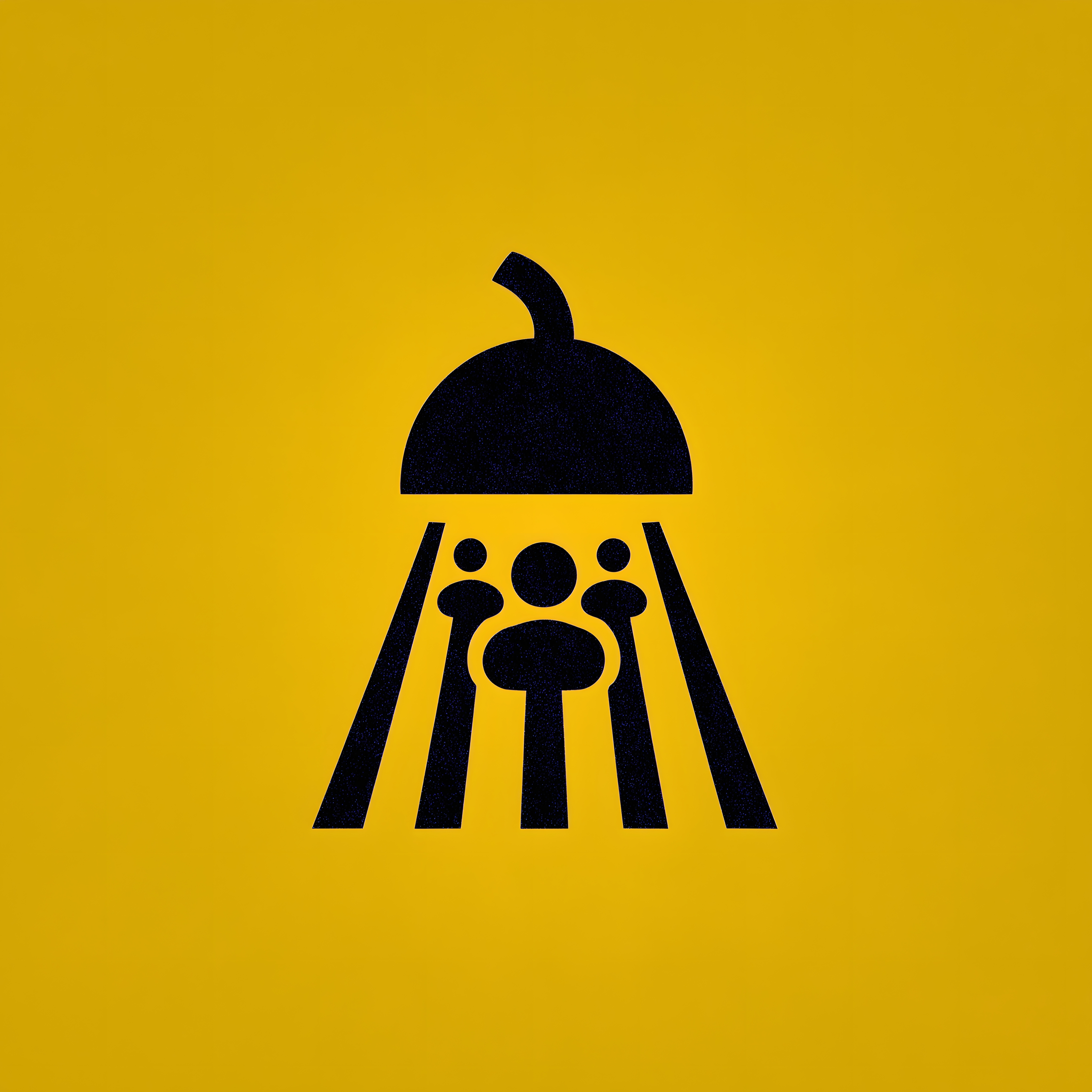 画面描述:源自侗族洪水神话,极简葫芦图标内有男女剪影,葫芦口射出探照光柱,背景为警示斜条纹,无复杂元素,以符号化设计寓意应急避难、安全庇护,承载侗族洪水求生智慧与现代安全理念。