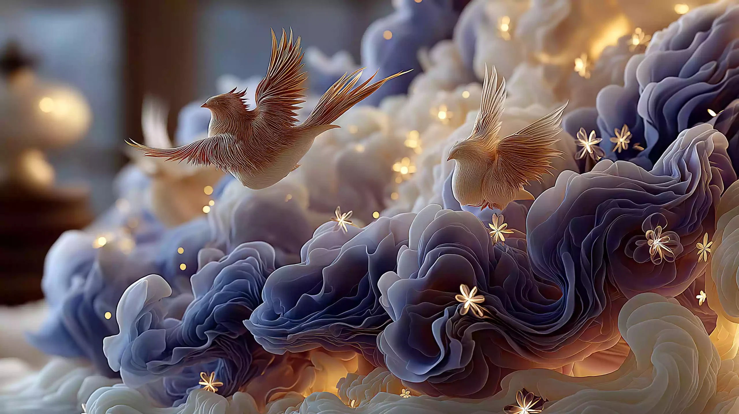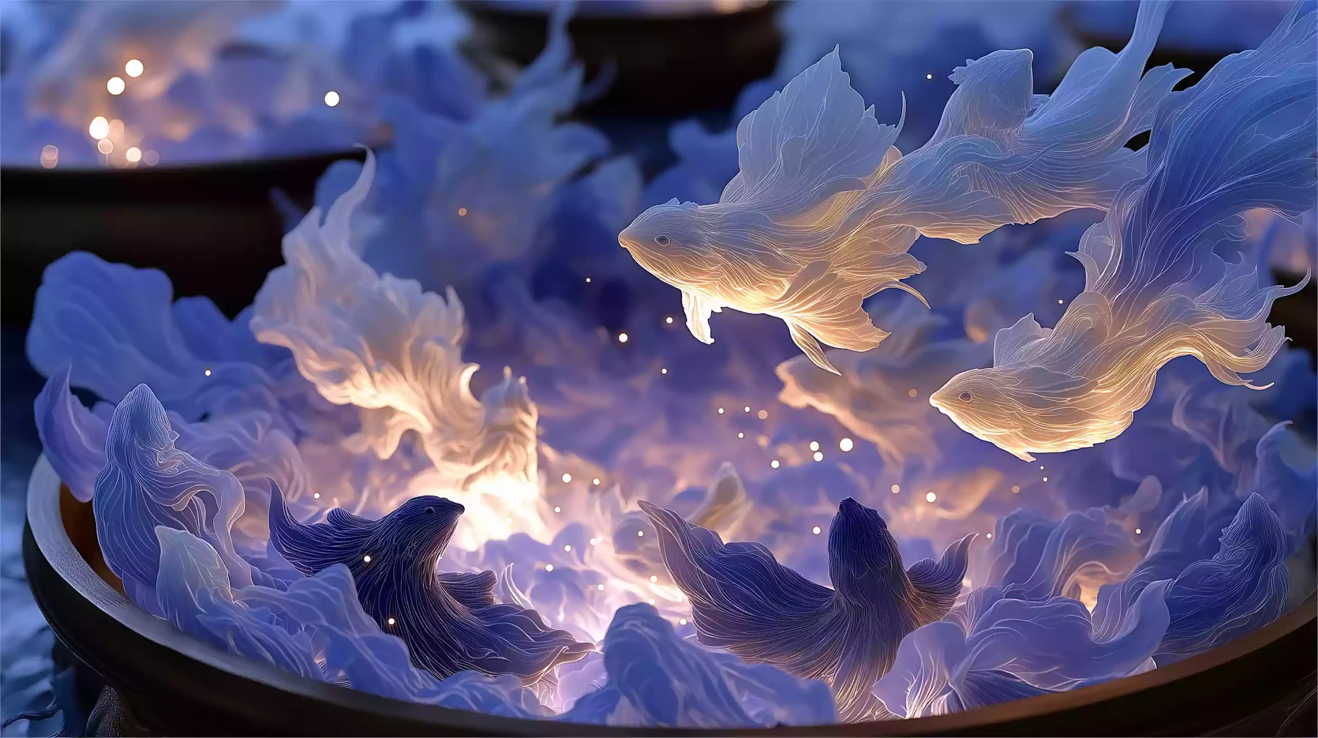 描述:《淮南王升仙・鸡犬云随》,贴合魏晋南北朝道教升仙思想(淮南王刘安 “一人得道,鸡犬升天” 传说盛行)。画面以淡白仙雾为底,中心淡金光晕(含淡黑犬剪影),周围浮淡紫丹药粒子;仙雾下 3-5 只淡灰鸡剪影随雾上升,背景淡蓝虚空缀银星,边缘隐淡棕药炉剪影(溢白烟),柔焦光影凸显 “升仙” 的仙幻感。