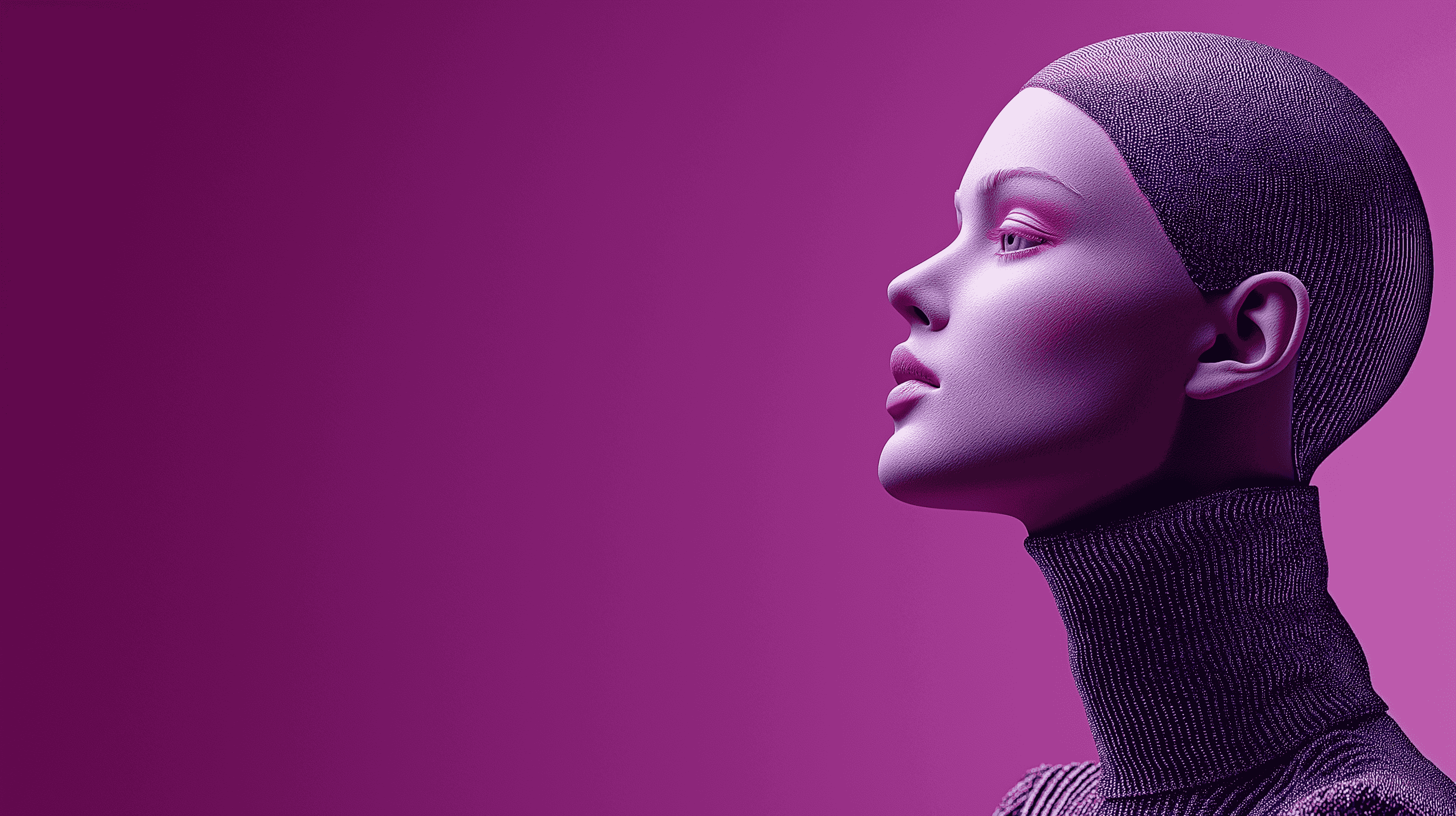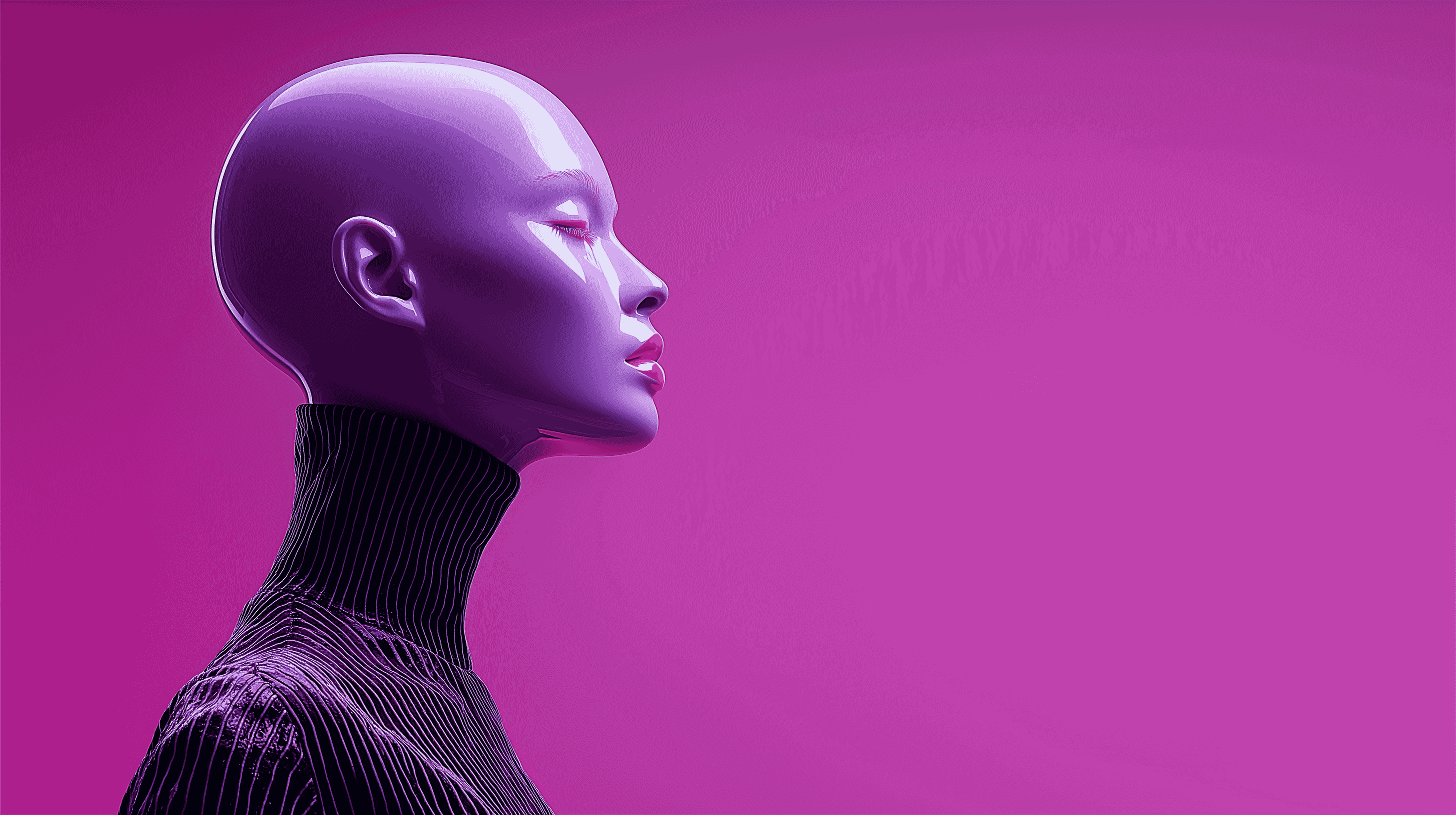 描述:画面呈现紫色调未来感人像,唇部妆容精致(适配口红广告需求),身着纹理感时尚服饰(适配服装广告合作),背景为统一紫色系渐变,整体风格前卫且具品牌质感,适用于口红推广、服装广告、美妆宣传等商用场景。