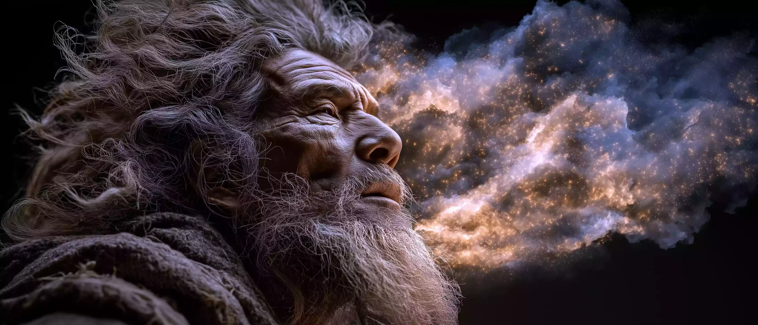 画面:篝火旁,苍老歌师吟唱史诗,口中飞出蚩尤征战、九黎辉煌等发光图像,盘旋汇入夜空成星河;周围孩子仰头张望,眼中倒映民族记忆与未来,彰显文明在歌声中永恒。