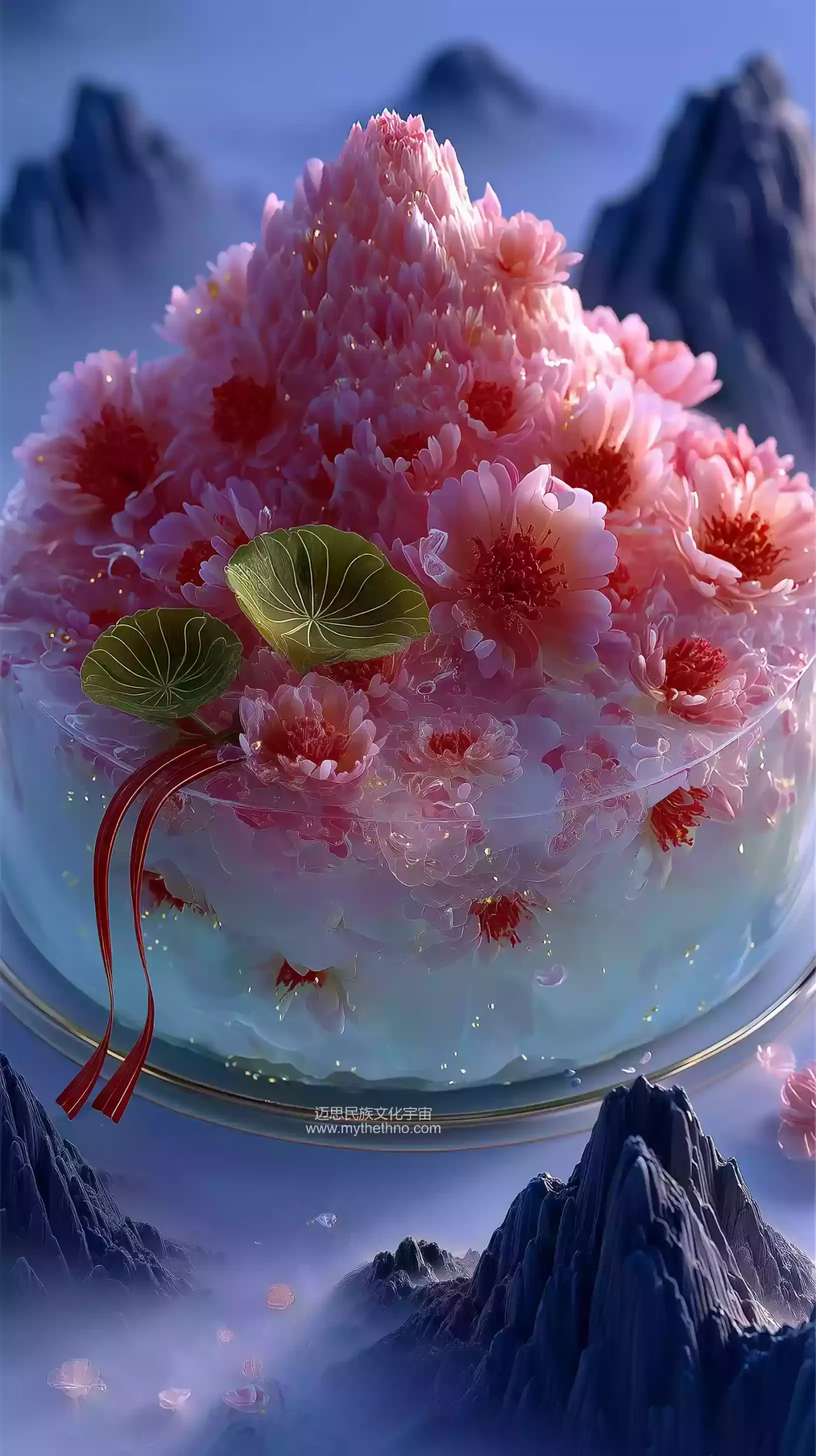 描述:《道教神仙・麻姑献寿》,源自魏晋道教神仙传说(麻姑 “献寿” 象征长寿吉祥,契合道教养生文化)。画面以淡白仙雾为底(含淡粉桃花瓣粒子),中心淡青玉盘(盛 3-5 颗淡红寿桃、1 株淡绿灵芝);盘周浮淡金 “寿” 字轮廓粒子,仙雾下有淡红丝绦(系淡白玉坠);背景隐淡黑仙山剪影,蓝云气流动,柔焦显 “献寿” 仙幻吉祥感。