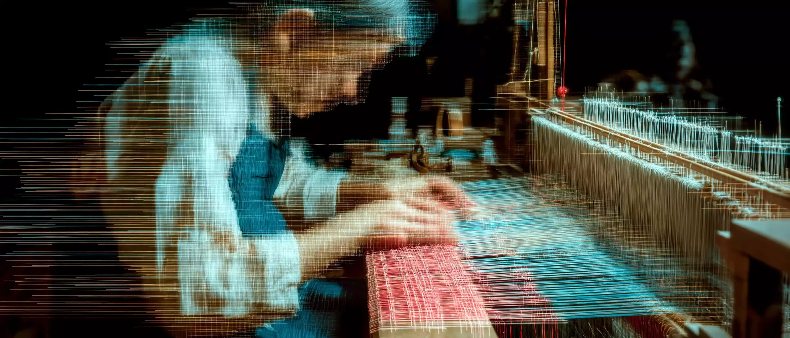 描述:《阿拉克涅 AI 织机》,基于文艺复兴对希腊技艺神话的关注,聚焦阿拉克涅与雅典娜织锦竞赛传说。竞赛织机迸发二进制锦缎(织锦呼应传统技艺,二进制关联 AI),丝线末端连接神经网络,雅典娜织品裂变出互联网协议,蜘蛛机械臂刺绣认证标签。画面将传统织艺神话与 AI 科技结合,展现 “技艺传承与科技革新的碰撞”。