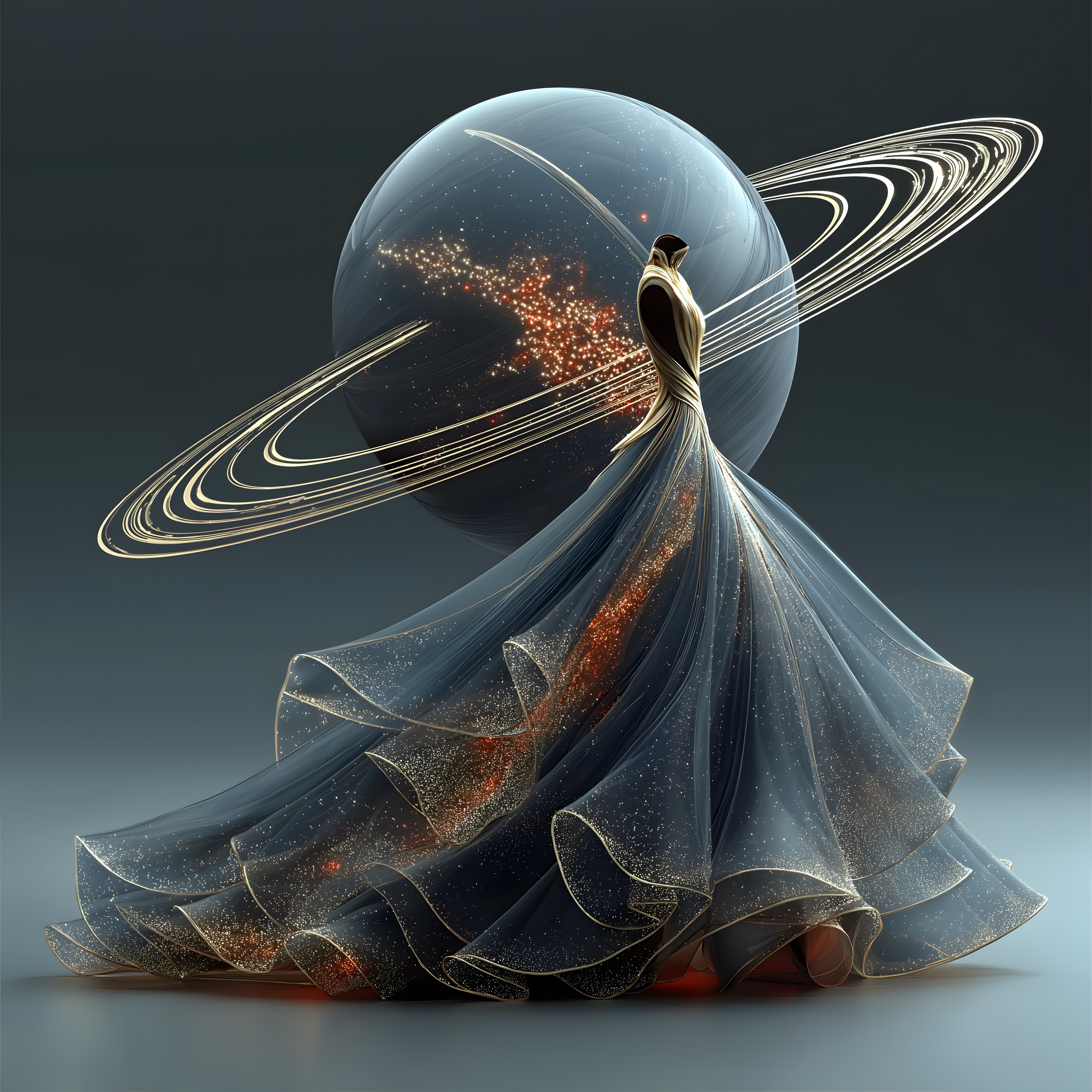 画面描述:零重力庆典现场,水晶奖杯碎片组装成旋转 DNA 双螺旋,红毯碎片构成行星环。胶片丝带编织成缀有 LED 刺绣的礼服,整体呈现量子物理般的真实感,打造科幻电影级盛典。