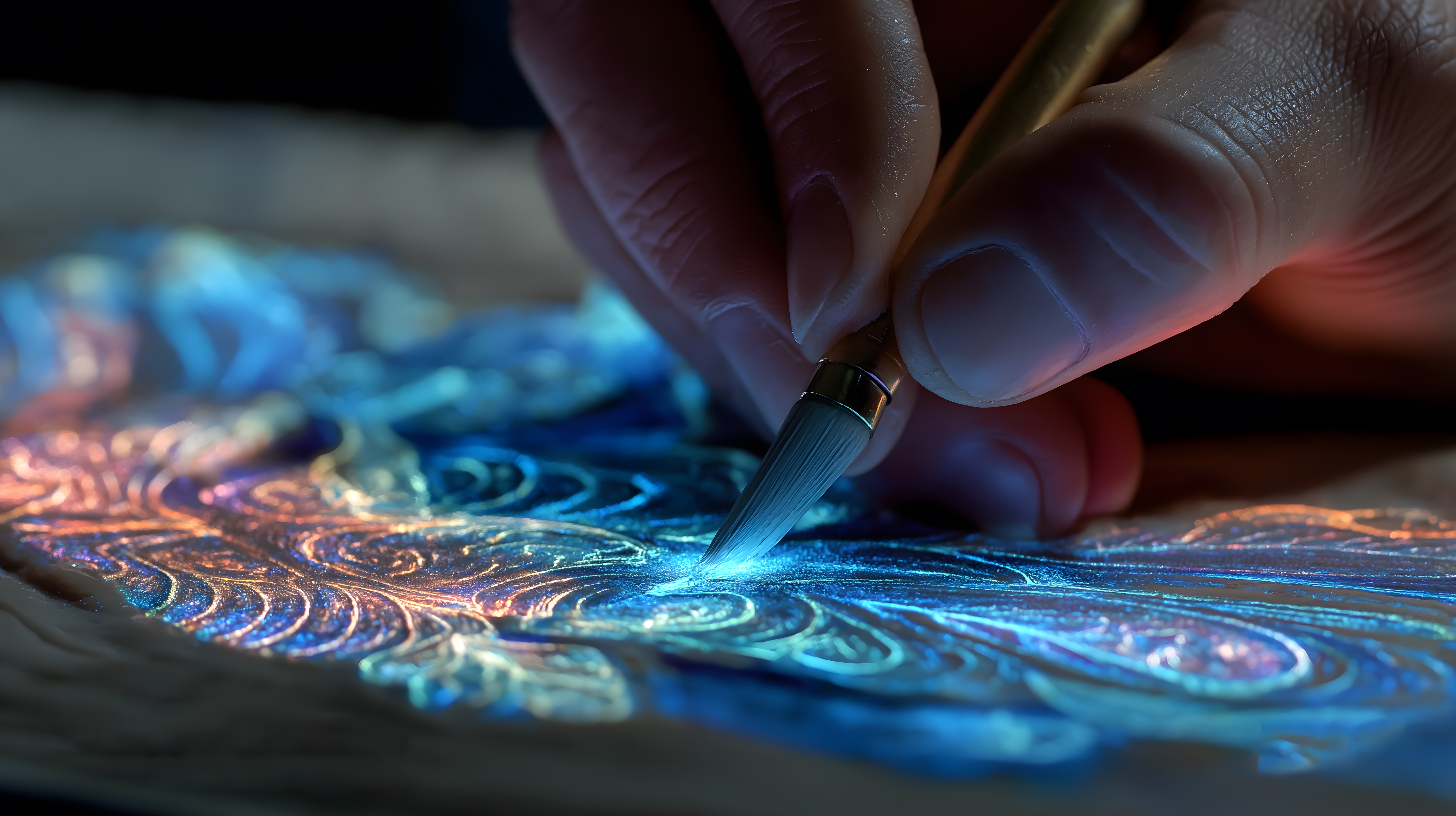 画面描述:未来非遗基因库中,全息糖画、纳米面塑、光影皮影重生。传统技艺在科幻场景进化,彰显非遗生命力,寓意中华文化在科技时代永续跃迁。